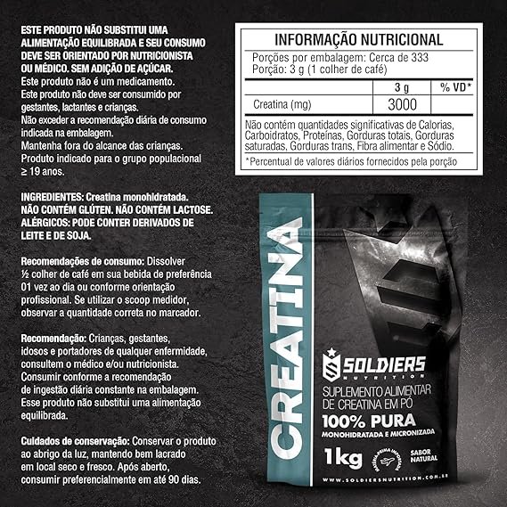 Creatina Monohidratada 1Kg – 100% Pura Importada – Soldiers Nutrition