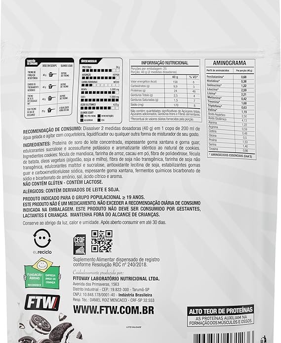 FTW 100% Whey Protein com Proteína Concentrada WPC, para Atletas com Alto Valor Biológico, Suplemento Pós-Treino Sem Glúten – Refil 1kg (Cookies)