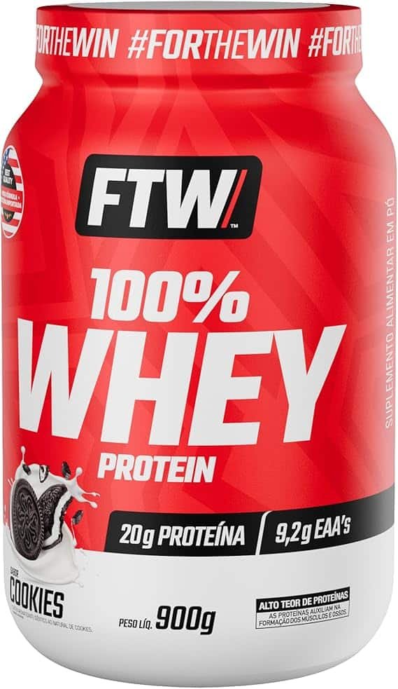 FTW 100% Whey Protein com Proteína Concentrada WPC, Suplemento Alimentar Pós-Treino em Pó com Fonte de Proteína do Soro do Leite, Alto Valor Biológico, Sem Glúten – Pote 900g (Sabor Cookies)