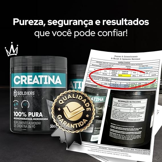 Aditivos Creatina, Aminoácido Informações sobre alergia A soja pode conter, Não contém glúten, Não contém lactose, O leite pode conter Unidades 1.00 Pote Marca Soldiers Nutrition Formato Pó Descrição da faixa etária Adulto Fabricante Soldiers Nutrition Referência do fabricante 1 Dimensões da embalagem 12,7 x 10 x 9,6 cm; 300 g ASIN B0CTCY58H3 Funciona a bateria ou pilha? Não EAN 7898384795239 - Dimensões da embalagem : 12,7 x 10 x 9,6 cm; 300 g