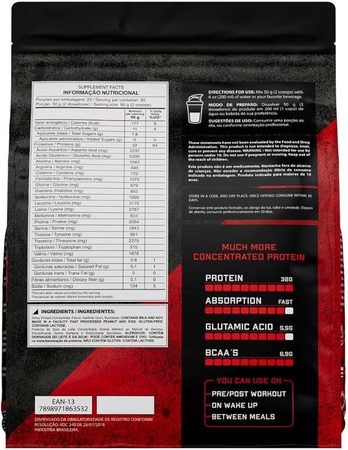 Whey Protein Concentrado Dark Lab, 1kg, Banana, Ganho de Massa Muscular